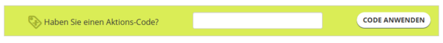 Unter der Preisübersicht erscheint das Gutscheinfeld mit der Beschriftung „Haben Sie einen Actions-Code?“.