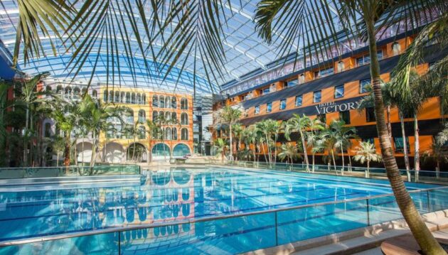 Das 4* Victory Hotel hat die lustige Form einer Hochseeyacht und liegt im Hauptgebäude der Therme, direkt neben dem Wellenbad. Morgens erwartet Euch ein leckeres Frühstück. Auf Booking.com erhält das Hotel fabelhafte 8.6 von 10 Punkten bei über 530 Bewertungen.