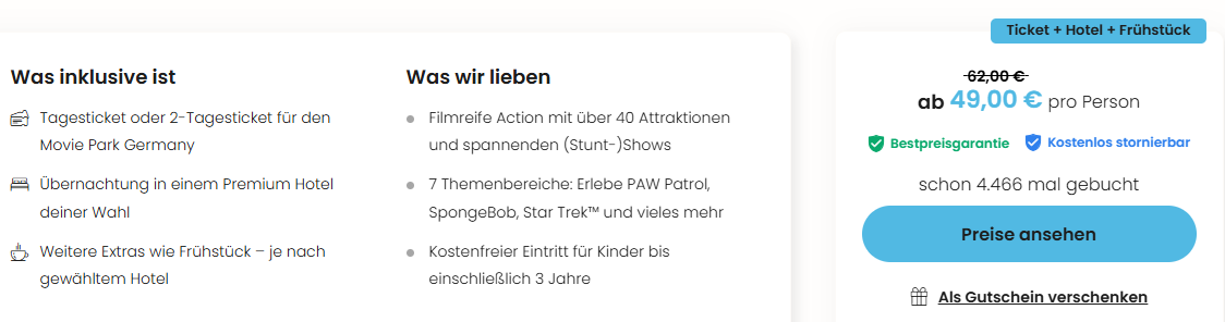 Movie Park Angebot im Überblick