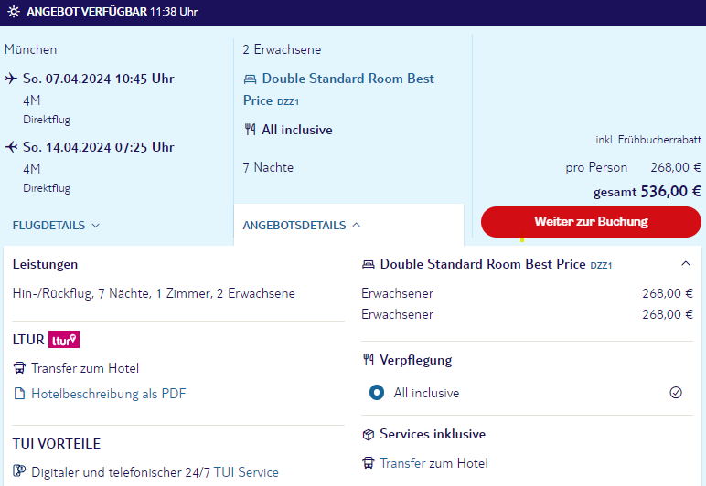 - Transfer: Nicht inklusive, günstige Transfermöglichkeiten findet Ihr hier