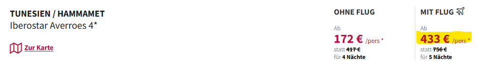 - Preis pro Person: 433 € bei einer Reise mit 2 Personen